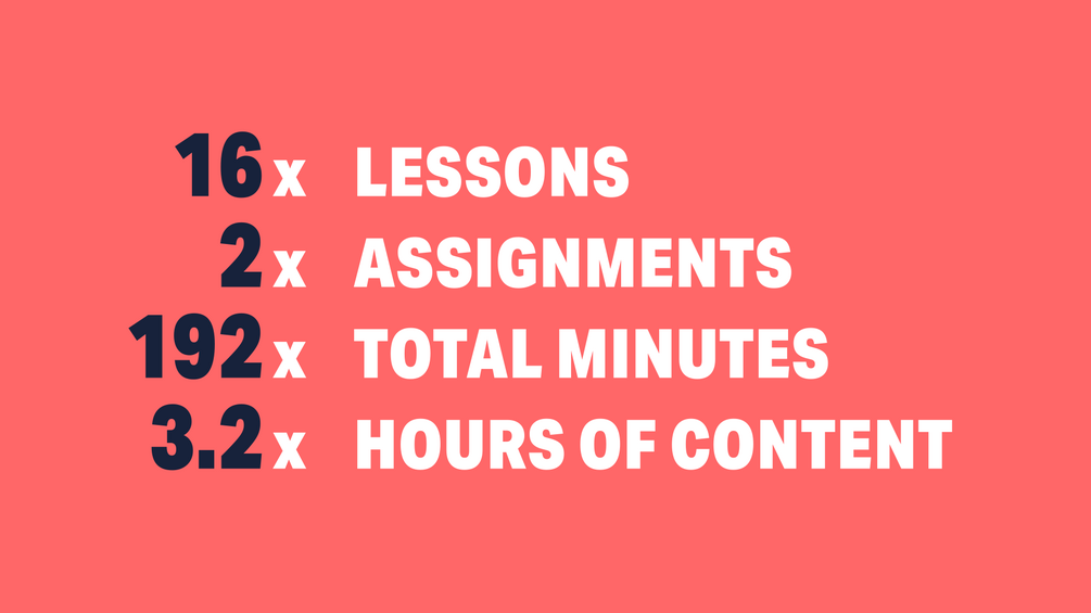 You will get 27 video lessons, 3 assignments to put your skills into practice, Lesson files and a total of 5.4+ hours of content!!!